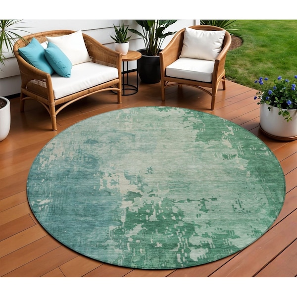 8' Emerald Round Abstract Washable Indoor Outdoor Area Rug