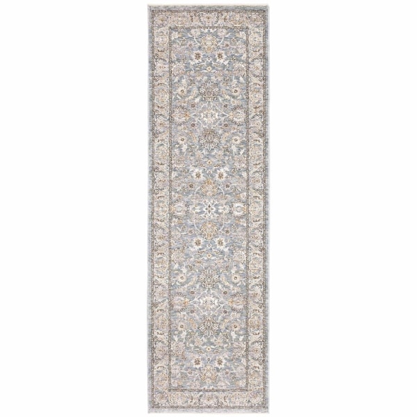 8 ft. Rectangle Machine Woven Floral Oriental Indoor Runner Rug Blue & Ivory