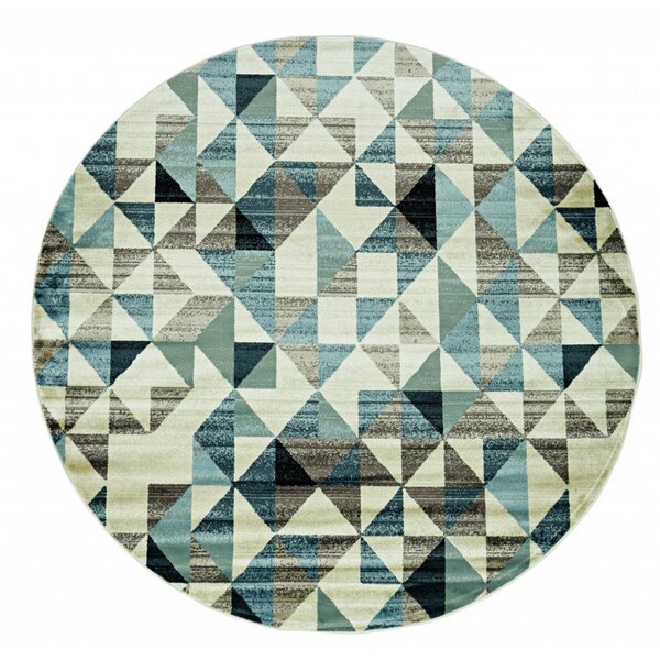 8 ft. Round Blue & Beige Nested Diamonds Modern Area Rug