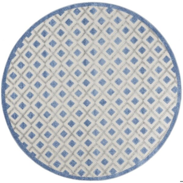 8 ft. Round Blue & Gray Indoor & Outdoor Area Rug