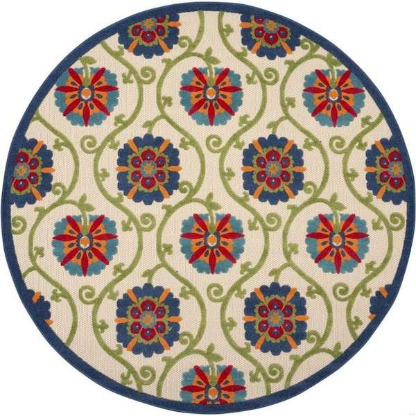 8 ft. Round Blue Vines Indoor & Outdoor Area Rug