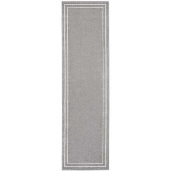 Add great coloration and comfortable texture to your space with this 8-foot gray and ivory indoor outdoor runner rug. This runner shaped rug flaunts a gray and ivory color that will be a great way to accent your space. Solid colors are versatile and will blend with any existing decor style. Makes a great way to dress up your patio, porch, or poolside, but also works well as a durable and easy to maintain option in the kitchen, family room, or mudroom. 26-inch h x 90-inch w x 0.25-inch d.