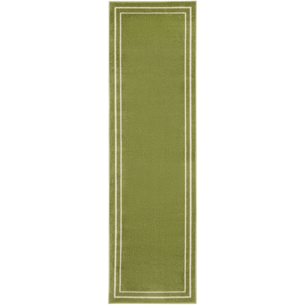 Add some artistry to your room with this 8-foot green and ivory indoor outdoor runner rug. This runner shaped rug flaunts a green and ivory color that will be a great way to accent your space. Solid colors are versatile and will blend with any existing decor style. Versatile in use, durable, and easy to maintain, this rug is an ideal solution to add a decorative and inviting touch to your indoor or outdoor space. 26-inch h x 90-inch w x 0.25-inch d.