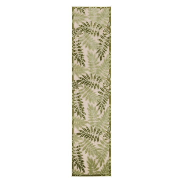 8' Ivory And Green Palm Leaf Indoor Outdoor Runner Rug