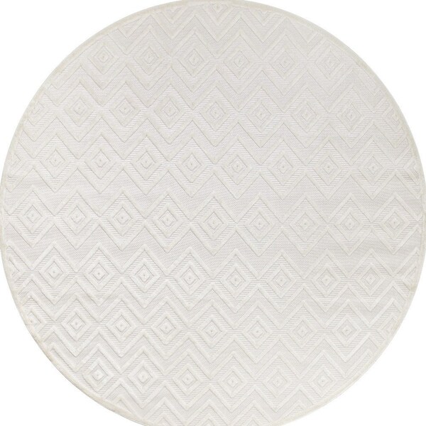 8' Ivory And White Geometric Indoor Outdoor Area Rug