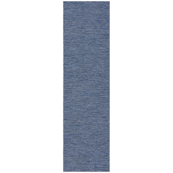 This 8-foot navy blue and ivory geometric indoor outdoor runner rug, is a great way to add warmth to a room. This runner shaped rug features a geometric design that will work well both indoors or out. A classic shape marries with good looking design for your living room, hall, bedroom, porch, patio, or poolside. Versatile in use, durable, and easy to maintain, this rug is an ideal solution to add a decorative and inviting touch to your indoor or outdoor space. 26-inch h x 96-inch w x 0.28-inch d.