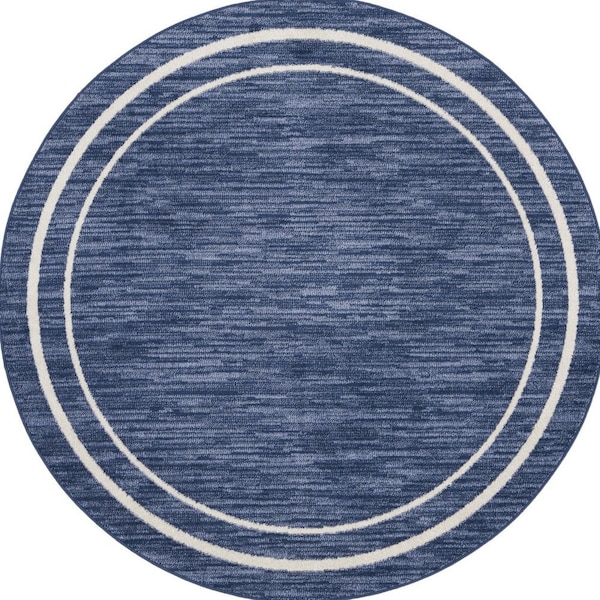 Add great coloration and comfortable texture to your space with this 8-foot navy blue and ivory round indoor outdoor area rug. This geometric round shaped rug features a solid color that combines hue and shape for a great look. Solid colors are versatile and will blend with any existing decor style. Versatile in use, durable, and easy to maintain, this rug is an ideal solution to add a decorative and inviting touch to your indoor or outdoor space. 96-inch h x 96-inch w x 0.25-inch d.