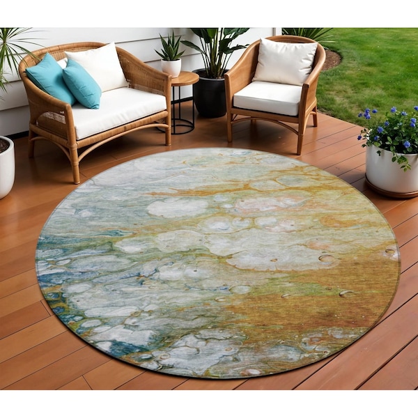 8' Orange Round Abstract Washable Indoor Outdoor Area Rug