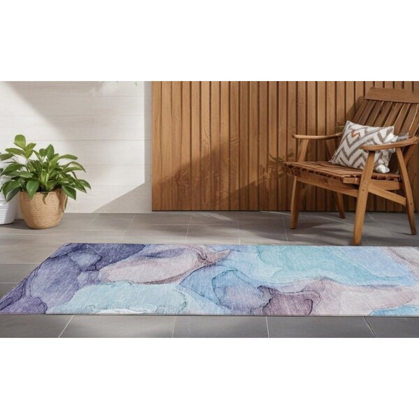 8' Runner Blue Abstract Washable Non Skid Indoor Outdoor Runner Rug