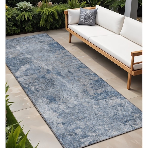 Set an inviting tone in your space with this 8-foot runner blue abstract washable stain resistant non skid indoor outdoor runner rug. This runner shaped rug features a abstract design in blue to give it visual interest. A classic shape marries with good looking design for your space ideal for spaces with kids and pets, this rug is stain resistant to help repel stains and spilled liquids. Place this area rug against a hardwood or tile floor and it will enliven your living space with style and sophistication. 27-inch H x 90-inch W x 0.19-inch D