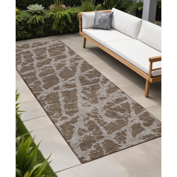 8' Runner Brown Abstract Washable Non Skid Indoor Outdoor Runner Rug