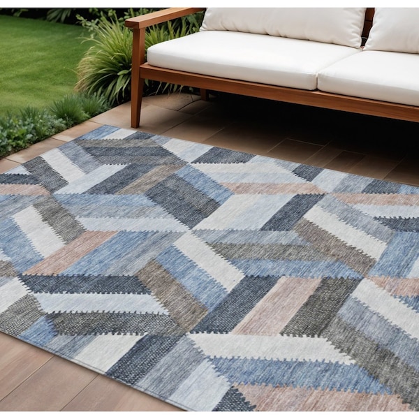 8' X 10' Blue Geometric Washable Indoor Outdoor Area Rug