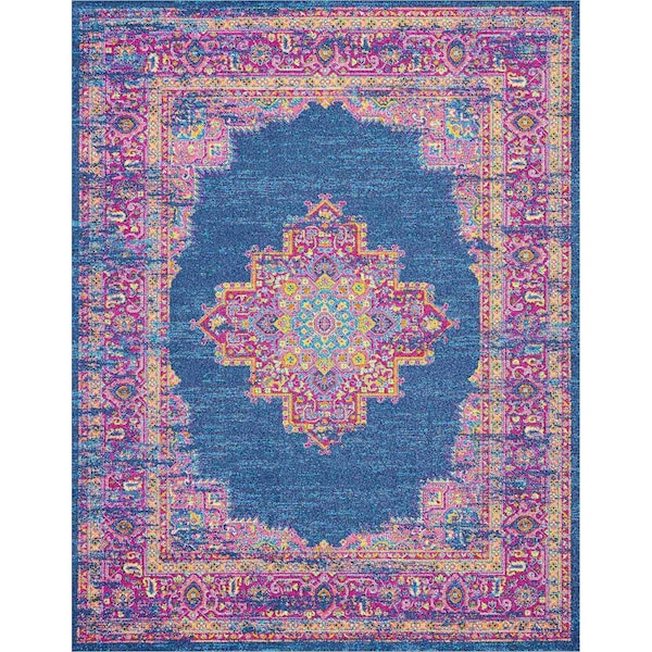 8 x 10 ft. Blue & Pink Medallion Area Rug