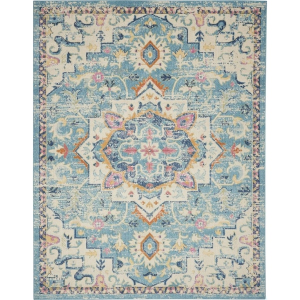 8 x 10 ft. Light Blue & Ivory Distressed Area Rug