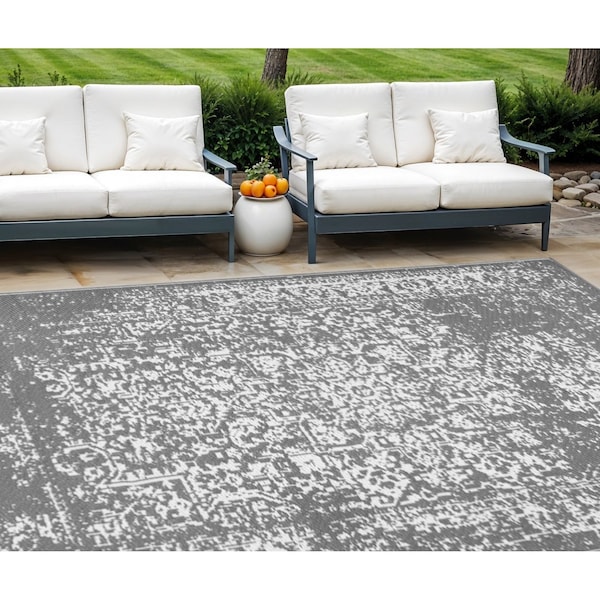Add great coloration and comfortable texture to your space with this 8-foot x 10-foot gray machine braided distressed area rug with uv protection. Ideal for spaces with kids and pets, this rug is stain resistant to help repel stains and spilled liquids. Area rugs help to give warmth and sense of home to your space. 96-inch H x 120-inch W x 0.12-inch D