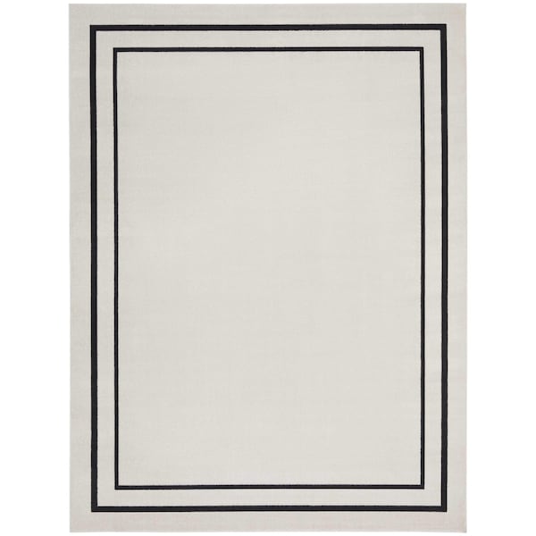 This 8-foot x 10-foot ivory and black indoor outdoor area rug, is a great way to add warmth to a room. This rectangle shaped rug flaunts a ivory and black color that will be a great way to accent your space. Solid colors are versatile and will blend with any existing decor style. Versatile in use, durable, and easy to maintain, this rug is an ideal solution to add a decorative and inviting touch to your indoor or outdoor space. 96-inch h x 120-inch w x 0.25-inch d.