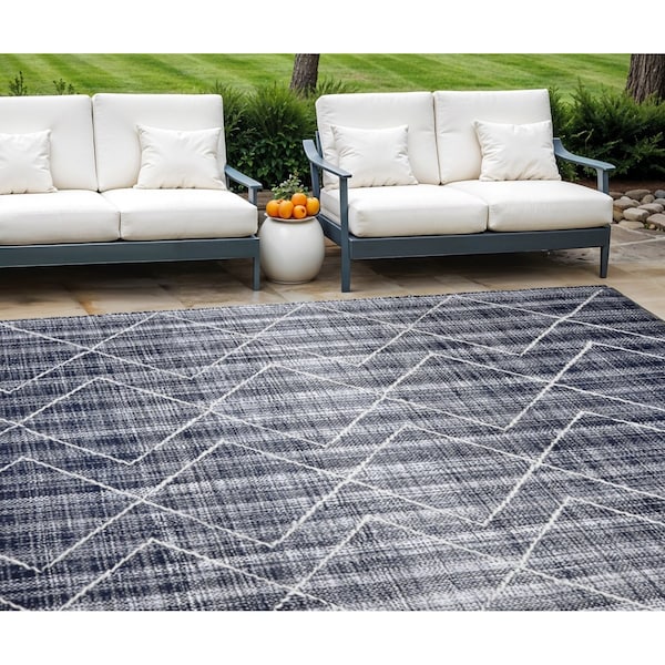 Add some artistry to your room with this 8-foot x 10-foot navy blue geometric hand woven area rug. This rectangle shaped rug features a geometric design in navy blue to give it visual interest. A classic shape marries with good looking design for your space ideal for spaces with kids and pets, this rug is stain resistant to help repel stains and spilled liquids. Crafted by skilled artisans, this hand woven rug is genuine and unique. No two will be exactly alike. Area rugs help to give warmth and sense of home to your space. 96-inch H x 120-inch W x 0.3-inch D