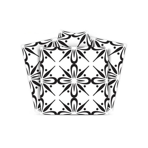 The possibilities are endless with these 8" x 8" Black and White Quattra Peel and Stick Removable Tile stickers. These fabulous peel and stick tiles will add lots of color, sophisticated flair, and fun design to your kitchen backsplash, fireplace mantel, stair treads, half wall, bathroom or nook. These 8" square tile stickers in multiple bright fun colors and designs are an easy, no mess solution to complete a personalized and colorful room makeover. Easy to apply on any clean dry flat surface, and easy to remove. Multi use and multi-room appeal make this design option is perfect for renters, landlords, college students and homeowners alike. Peel and stick tile decals make it easy to turn your space into a home. Removable without damage to surfaces. One kit contains 24 stickers. Kit includes a single style tile design.
