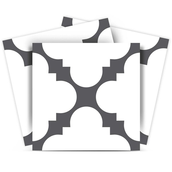 The possibilities are endless with these 8" x 8" Dark Gray and White Tri Peel and Stick Removable Tile stickers. These fabulous peel and stick tiles will add lots of color, sophisticated flair, and fun design to your kitchen backsplash, fireplace mantel, stair treads, half wall, bathroom or nook. These 8" square tile stickers in multiple bright fun colors and designs are an easy, no mess solution to complete a personalized and colorful room makeover. Easy to apply on any clean dry flat surface, and easy to remove. Multi use and multi-room appeal make this design option is perfect for renters, landlords, college students and homeowners alike. Peel and stick tile decals make it easy to turn your space into a home. Removable without damage to surfaces. One kit contains 24 stickers. Single Tile Deisgn.