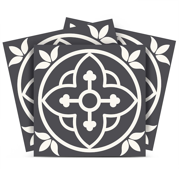 The possibilities are endless with these 8" x 8" Tulipa Gray and White Peel and Stick Removable Tile stickers. These fabulous peel and stick tiles will add lots of color, sophisticated flair, and fun design to your kitchen backsplash, fireplace mantel, stair treads, half wall, bathroom or nook. These 8" square tile stickers in multiple bright fun colors and designs are an easy, no mess solution to complete a personalized and colorful room makeover. Easy to apply on any clean dry flat surface, and easy to remove. Multi use and multi-room appeal make this design option is perfect for renters, landlords, college students and homeowners alike. Peel and stick tile decals make it easy to turn your space into a home. Removable without damage to surfaces. One kit contains 24 stickers. Kit includes a single style tile design.