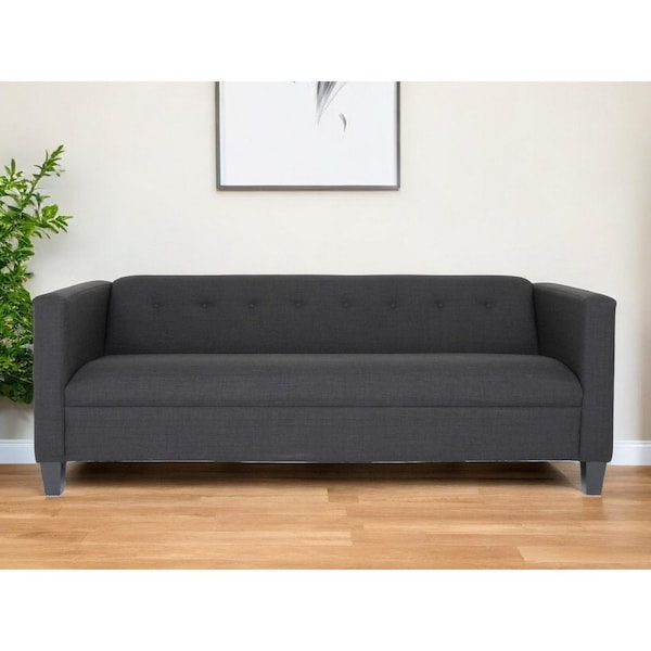 Transform your home's interior with this luxurious 80-inch black polyester sofa. Solid colors give you lots of decorative options and are easy to work into your decor scheme. Sinuous springs construction gives this piece strong support and makes it comfortable to sit even for long periods of time. Square arms offer a comfy place to rest. Black solid wood legs effortlessly elevate the room and add a touch of contemporary design. Built to last, this sofa will be a great centerpiece for your room. 28-inch H x 80-inch W x 34-inch D