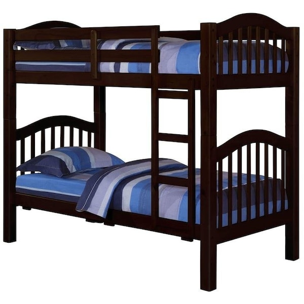 80" X 43" X 69" Espresso Pine Wood Twin Over Twin Bunk Bed