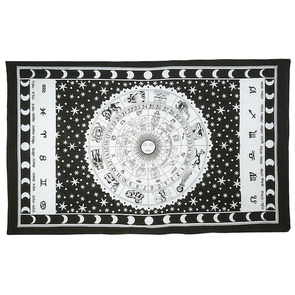 80" X 56" Black And White Cotton Hanging Tapestry