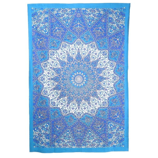 80" X 56" Royal Blue Mandala Cotton Hanging Tapestry