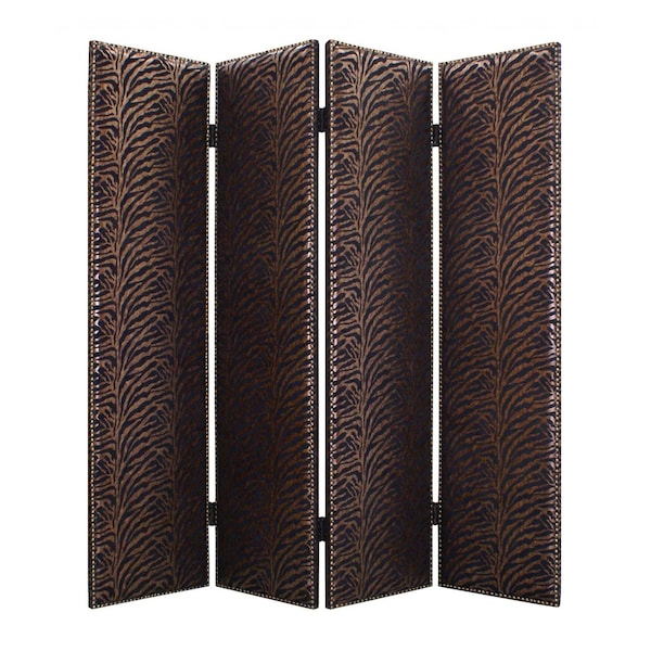 The 84-inch bronze fabric folding four panel screen room divider offers a stylish solution for creating privacy in your space. Featuring a sturdy wood frame, this divider combines durability with an elegant design. The fabric screen adds a touch of sophistication while ensuring versatility in any room setting. With four panels, it allows for flexible configurations to suit your needs. This room divider is perfect for separating areas in large rooms or adding a decorative element to your home decor. Its bronze finish brings warmth and a contemporary vibe, making it an attractive addition to your interior design. Enjoy the balance of functionality and aesthetics with this exquisite folding panel screen. 84.00-inch h x 84.00-inch w x 1.00-inch d.