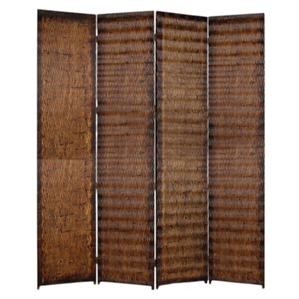 The 84-inch brown wood folding four panel screen room divider offers a stylish solution for creating privacy in any space. Its sturdy wood frame ensures durability while exuding a warm, rustic charm. Each of the four panels provides ample coverage, allowing you to easily section off areas in a room or create a cozy nook. This versatile piece seamlessly blends with various decor styles, enhancing your interior design. With its folding capability, the room divider is easy to store or reposition as needed, making it both functional and attractive. Transform your living area or workspace with this elegant addition that balances aesthetic appeal and practicality for your home. 84.00-inch h x 84.00-inch w x 1.00-inch d.