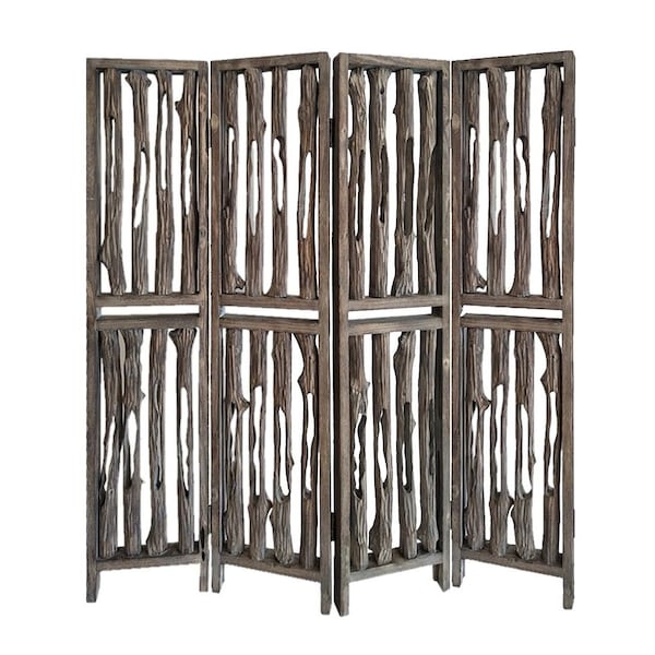Enhance your living space with this elegant 84-inch brown room divider featuring a folding design that boasts four panels crafted from high-quality wood in a rich brown finish. The versatile folding style allows you to effortlessly separate areas in your home while adding a touch of sophistication and privacy. The natural allure of the wood material complements a wide range of interior decor styles, bringing warmth and texture to any room. Perfect for creating designated spaces in studio apartments or open-concept homes, this brown room divider adds a functional and stylish element to your living room, bedroom, or home office. 84-inch H x 84-inch W x 3-inch D