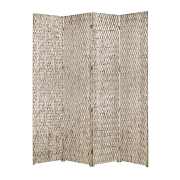 The 84-inch silver wood folding four panel screen room divider offers a stylish solution for creating distinct areas in your space. Crafted from high-quality wood, this divider not only serves a functional purpose but also adds an elegant touch to your decor. Featuring four panels, it easily adapts to suit various room layouts and preferences. The folding design allows for effortless setup and storage, making it a practical choice for any home. With its sleek silver finish, this room divider enhances both contemporary and traditional interiors alike. Transform your living area with this versatile piece that combines aesthetics and utility seamlessly. 84.00-inch h x 84.00-inch w x 1.00-inch d.