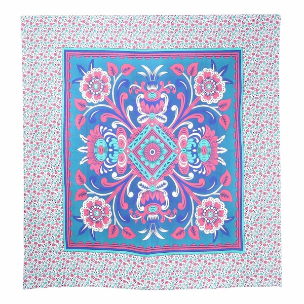 88" X 84" Blue Red And White Floral Cotton Hanging Tapestry