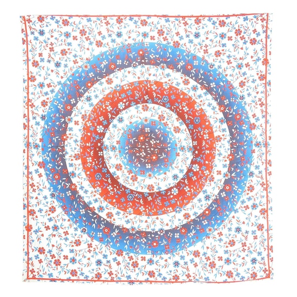 88" X 84" White Blue And Red Floral Cotton Hanging Tapestry