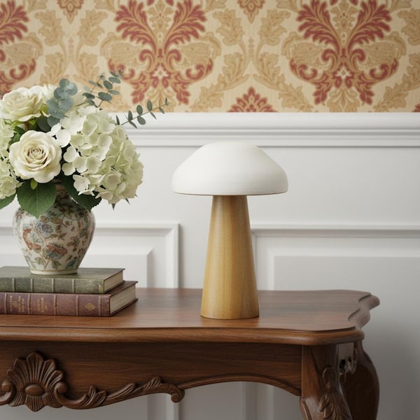 This 9-inch brown and white wood hand painted mushroom tabletop sculpture will add a beautiful decorative accent to your decor. It's a perfect addition for those who love an up-to-the-minute look and feel. Crafted with meticulous attention to detail, this handmade piece celebrates the beauty of nature. The wooden material brings warmth and texture, while the purposeful coat and paint distressing adds charm and character. This sculpture can effortlessly blend into various decor styles, enhancing your space with a touch of artistic flair. 9.00-inch h x 6.00-inch w x 6.00-inch d.