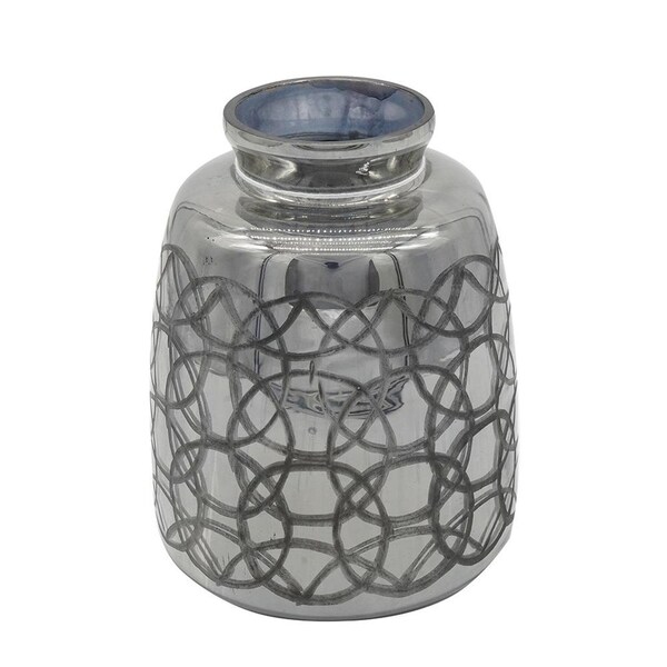 The 9-inch dark gray geometric etched glass table vase adds a modern touch to your home decor. This vase is perfect for showcasing fresh flowers or decorative branches. Its hand-painted design brings a unique artistry that enhances any space. Made from high-quality glass, this vase blends durability with elegance and contemporary style making it ideal for display on dining tables, coffee tables, bookshelf, mantle, dresser, or console table. 9.1-inch h x 8-inch w x 8-inch d.