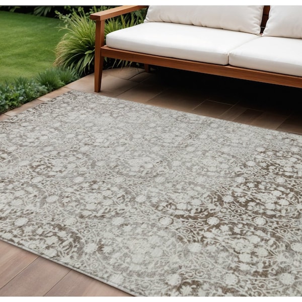Add great coloration and comfortable texture to your space with this 9-foot x 12-foot chocolate damask washable indoor outdoor area rug. This rectangle shaped rug features a damask design that will work well both indoors or out. A classic shape marries with good looking design for your living room, hall, bedroom, porch, patio, or poolside. Ideal for outdoor spaces or high traffic areas with kids and pets, this rug is made from heavy duty polyester that is stain resistant to help repel water, dirt, and stains. Versatile in use, durable, and easy to maintain, this rug is an ideal solution to add a decorative and inviting touch to your indoor or outdoor space. 108-inch h x 144-inch w x 0.19-inch d.