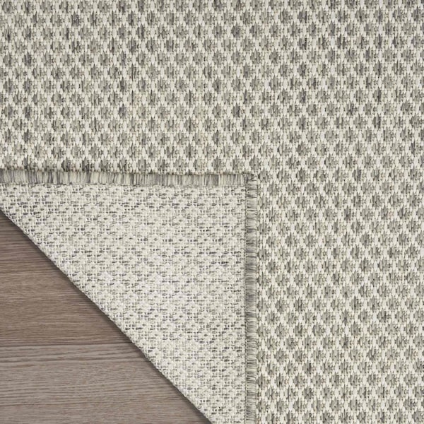 Add great coloration and comfortable texture to your space with this 9-foot x 12-foot ivory and silver indoor outdoor area rug. Versatile in use, durable, and easy to maintain, this rug is an ideal solution to add a decorative and inviting touch to your indoor or outdoor space. Featuring a machine-made construction, it ensures longevity and resilience against the elements. The rectangular shape perfectly complements various seating arrangements, making it a stylish addition to your environment. 108-inch h x 144-inch w x 0.25-inch d.