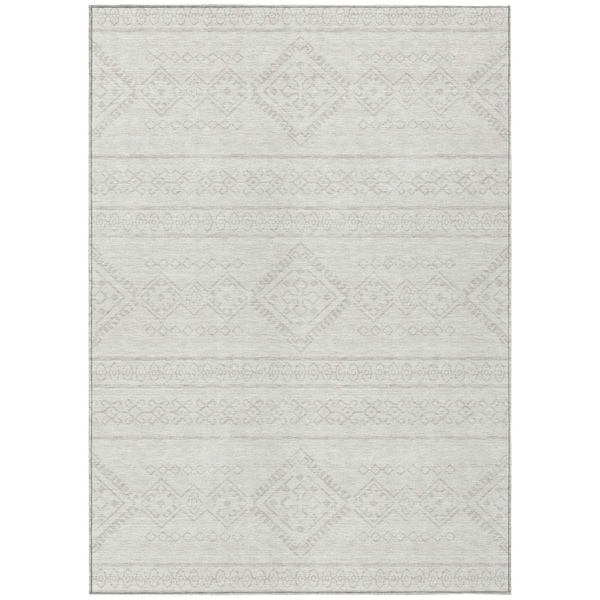 9' X 12' Ivory And Silver Southwestern Washable Indoor Outdoor Area Rug