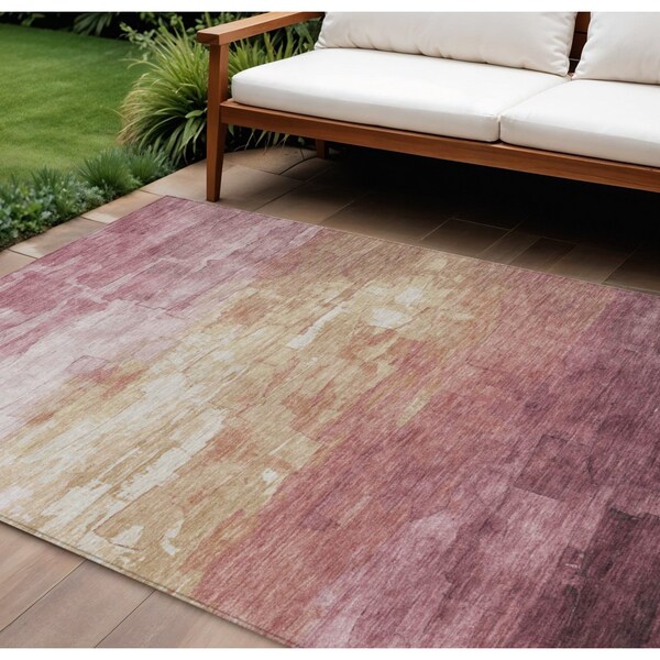 This 9-foot x 12-foot mauve and pink striped washable indoor outdoor area rug, is a great way to add warmth to a room. This rectangle shaped rug features a striped design that will work well both indoors or out. A classic shape marries with good looking design for your living room, hall, bedroom, porch, patio, or poolside. Ideal for outdoor spaces or high traffic areas with kids and pets, this rug is made from heavy duty polyester that is stain resistant to help repel water, dirt, and stains. Makes a great way to dress up your patio, porch, or poolside, but also works well as a durable and easy to maintain option in the kitchen, family room, or mudroom. 108-inch h x 144-inch w x 0.19-inch d.