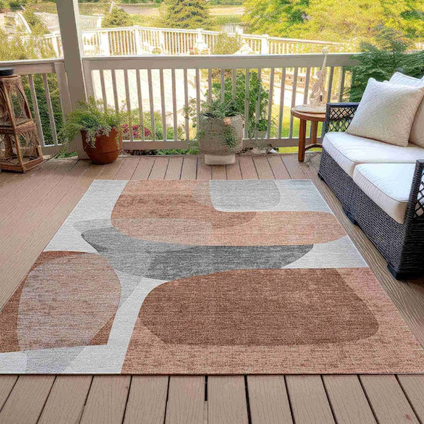 Set an inviting tone in your space with this 9-foot x 12-foot rust and gray abstract washable indoor outdoor area rug. This rectangle shaped rug features a abstract design that will work well both indoors or out. A classic shape marries with good looking design for your living room, hall, bedroom, porch, patio, or poolside. Ideal for outdoor spaces or high traffic areas with kids and pets, this rug is made from heavy duty polyester that is stain resistant to help repel water, dirt, and stains. Versatile in use, durable, and easy to maintain, this rug is an ideal solution to add a decorative and inviting touch to your indoor or outdoor space. 108-inch h x 144-inch w x 0.19-inch d.