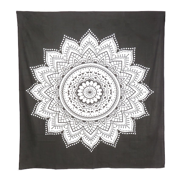 Unique and decorative, this 92-inch x 84-inch black and white mandala cotton hanging tapestry will leave a lasting impression. Easily create a focal point in your room with this generously sized bohemian decor. Handmade with care, this piece brings some authenticity to your space. Instantly liven up your space with this art that brings color and dimension to your walls. Adorn your walls in style with this bed icon art. This good looking decor will fill the empty space on your wall while adding a stylish and decorative touch. Utilize this opportunity to create a focal point in the room with this fabulous wall decor option. 92-inch h x 84-inch w x 0.2-inch d.