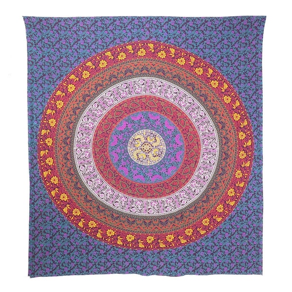 Bring some sizzle to your space with this eye-catching 92-inch x 84-inch blue red and yellow mandala cotton hanging tapestry. Easily create a focal point in your room with this generously sized bohemian decor. Handmade with care, this piece brings some authenticity to your space. Instantly liven up your space with this art that brings color and dimension to your walls. Adorn your walls in style with this bed icon art. This good looking decor will fill the empty space on your wall while adding a stylish and decorative touch. Utilize this opportunity to create a focal point in the room with this fabulous wall decor option. 92-inch h x 84-inch w x 0.2-inch d.