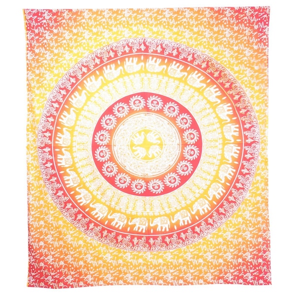 Add an air of fashion to your room and rejuvenate the space with this 92-inch x 84-inch mustard red and white mandala cotton hanging tapestry. Easily create a focal point in your room with this generously sized bohemian decor. Handmade with care, this piece brings some authenticity to your space. Instantly liven up your space with this art that brings color and dimension to your walls. Adorn your walls in style with this bed icon art. This good looking decor will fill the empty space on your wall while adding a stylish and decorative touch. Utilize this opportunity to create a focal point in the room with this fabulous wall decor option. 92-inch h x 84-inch w x 0.2-inch d.