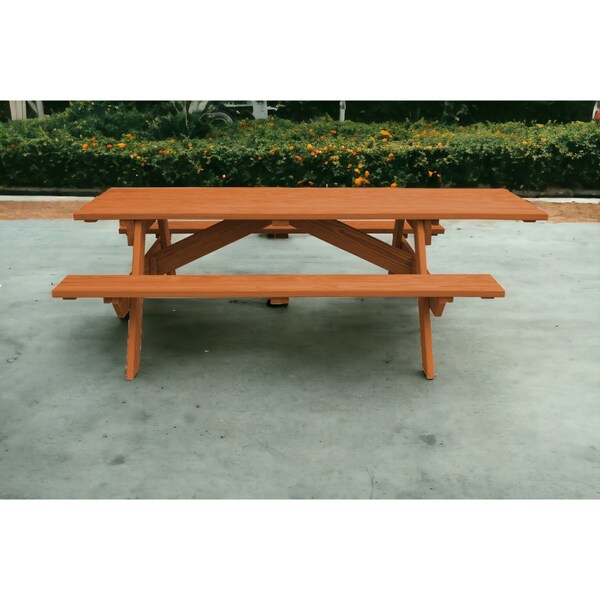 Enjoy the great outdoors in style with our 94-inch brown solid wood outdoor picnic table. A picnic table and the open air can offer a more casual atmosphere to spark lively conversation at your next outdoor casual dinner party. If you are searching for the highest quality wood furniture, solid pine wood can not be beaten. This surface is an unmatchable combination of beauty and durability. This quadratic outdoor table has clean lines and plenty of surface area. Don't miss out on this must-have outdoor accessory. 30-inch h x 94-inch w x 66-inch d.