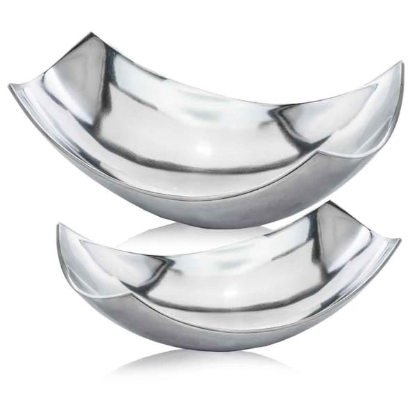 9.75 x 17.25 x 5.5 in. Buffed Cucha Large Scoop Bowl, Silver