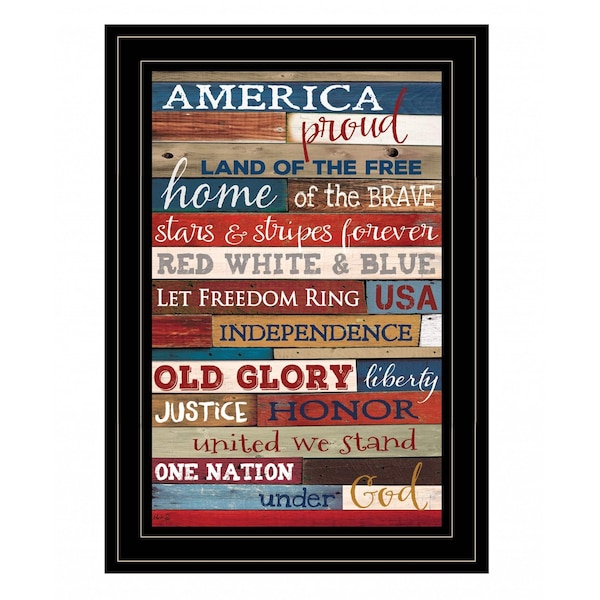 Bring some sizzle to your space with this eye-catching america proud black framed print wall art. This print is a visual artistic expression that allows you to decorate your space in style. Reproduced for you on wood, this hanging decorative accent will be a trendy and fashionable way to dress your walls in a rustic and modern farmhouse vibe. Adding this hanging wall art to your space to make your room feel more finished and attractive. Utilize this opportunity to create a focal point in the room with this fabulous wall decor option. 14-inch H x 10-inch W x 1-inch D