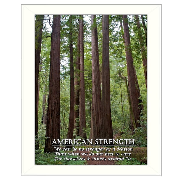 The american strength 4 white framed print wall art is the perfect decorative accessory for your home. This print is a visual artistic expression that allows you to decorate your space in style. Reproduced for you on paper, this hanging decorative accent will be a trendy and fashionable way to dress your walls. Adding this hanging wall art to your space to make your room feel more finished and attractive. Utilize this opportunity to create a focal point in the room with this fabulous wall decor option. 14-inch H x 18-inch W x 1.5-inch D