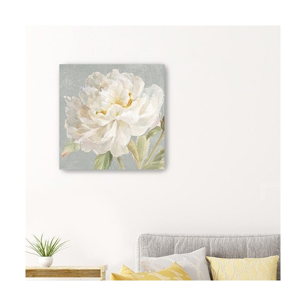 Add an air of fashion to your room and rejuvenate the space with this angelic white peony flower unframed print wall art. This print is a visual artistic expression that allows you to decorate your space in style. Reproduced for you on canvas, this hanging decorative accent will be a trendy and fashionable way to dress your walls. Adding this hanging wall art to your space to make your room feel more finished and attractive. Instantly liven up your space with this art that brings color and dimension to your walls. 20 inches H x 20 inches W x 1.25 inches D