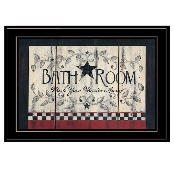 The bath room black framed print bathroom wall art is the perfect decorative accessory for your home. This print is a visual artistic expression that allows you to decorate your space in style. Reproduced for you on paper, this hanging decorative accent will be a trendy and fashionable way to dress your walls. Hang on your wall to add some up to date fashion and decoration. Utilize this opportunity to create a focal point in the room with this fabulous wall decor option. 15-inch H x 19-inch W x 1-inch D